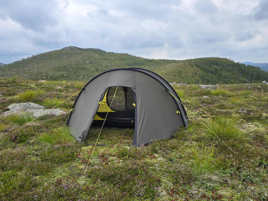 The NORTENT Ly 1 Tent, an extremely robust yet lightweight shelter designed for solo adventurers exploring Australia’s remote wilderness. Perfect for longer hikes into the mountains or isolated plains, this 4-season tunnel tent offers ample space for one person, their equipment, and cooking gear, with a roomy inner tent that fits a 190 x 65 cm sleeping pad. Weighing just 2.45 kg (minimum) and packing down to 43 x 21 cm, the Ly 1 combines portability with durability, featuring a silnylon flysheet (30D, 3000mm HH) and Dyneema-reinforced stress points for exceptional strength. Its aerodynamic shape and versatile anchoring options, including 14 Dyneema guylines and 24 aluminium Y-pegs, ensure stability in harsh weather, making it a dependable companion for all conditions.