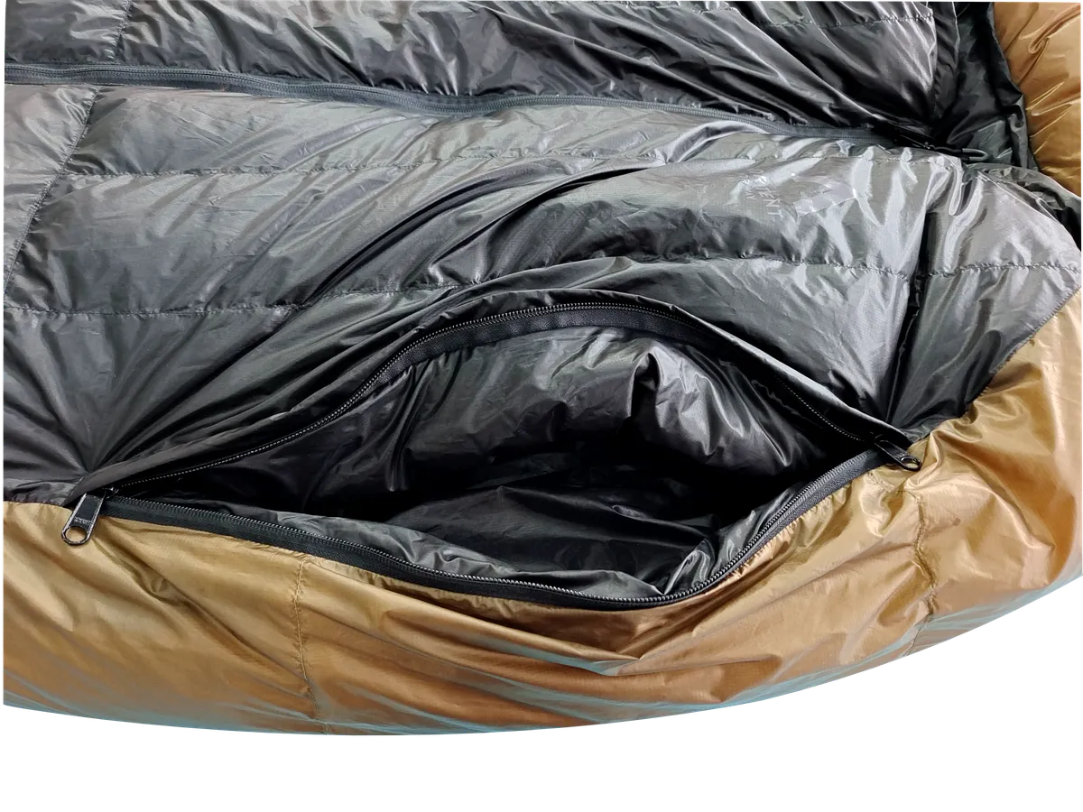 The Lyng Sleeping Bag is designed for ultimate flexibility, allowing you to use your hands and feet without sacrificing warmth. Dual side zippers offer easy arm access, while the bottom zipper allows you to move your legs, transforming the sleeping bag into a wearable layer—perfect for organizing gear, making coffee, or stepping outside without losing insulation.