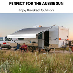 Enjoy reliable shelter wherever you decide to pull up with the Shade Shield 17ft x 8ft Roll Out Caravan Awning. Perfect for the Aussie outback, coastal retreats, or motorhome adventures, the sleek grey to white fade seamlessly complements any caravan exterior.